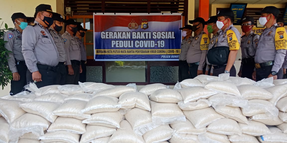 Polri Peduli Covid, Polsek Bunut Kembali Bagikan 385 Paket Beras Kepada Warga Terdampak Covid-19