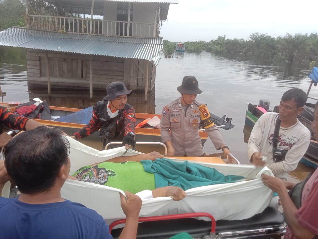 Warga tersebut diangkut menggunakan speed boat menuju ambulans Desa Bagan Laguh untuk dibawa pulang ke rumahnya pada Kamis, (18/1/2024).
