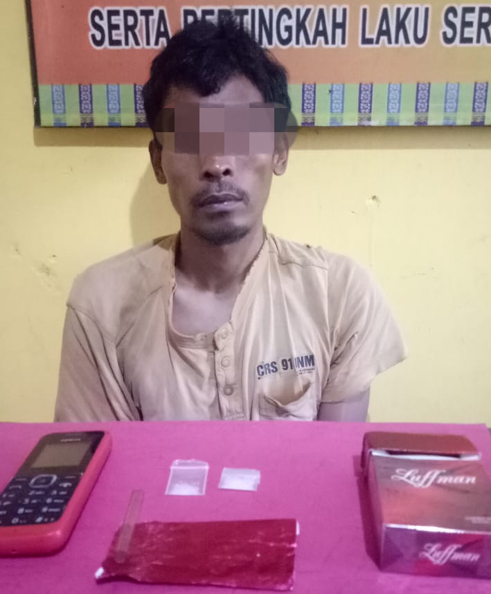 Dari pelaku ditemukan barang bukti 1 bungkus kotak rokok Merk Luffman berisi 2 paket kecil narkotika jenis shabu dan sepotong kaca pyrex, turut duamankan 1 unit Hp Nokia type 105 warna merah yang digunakan pelaku.