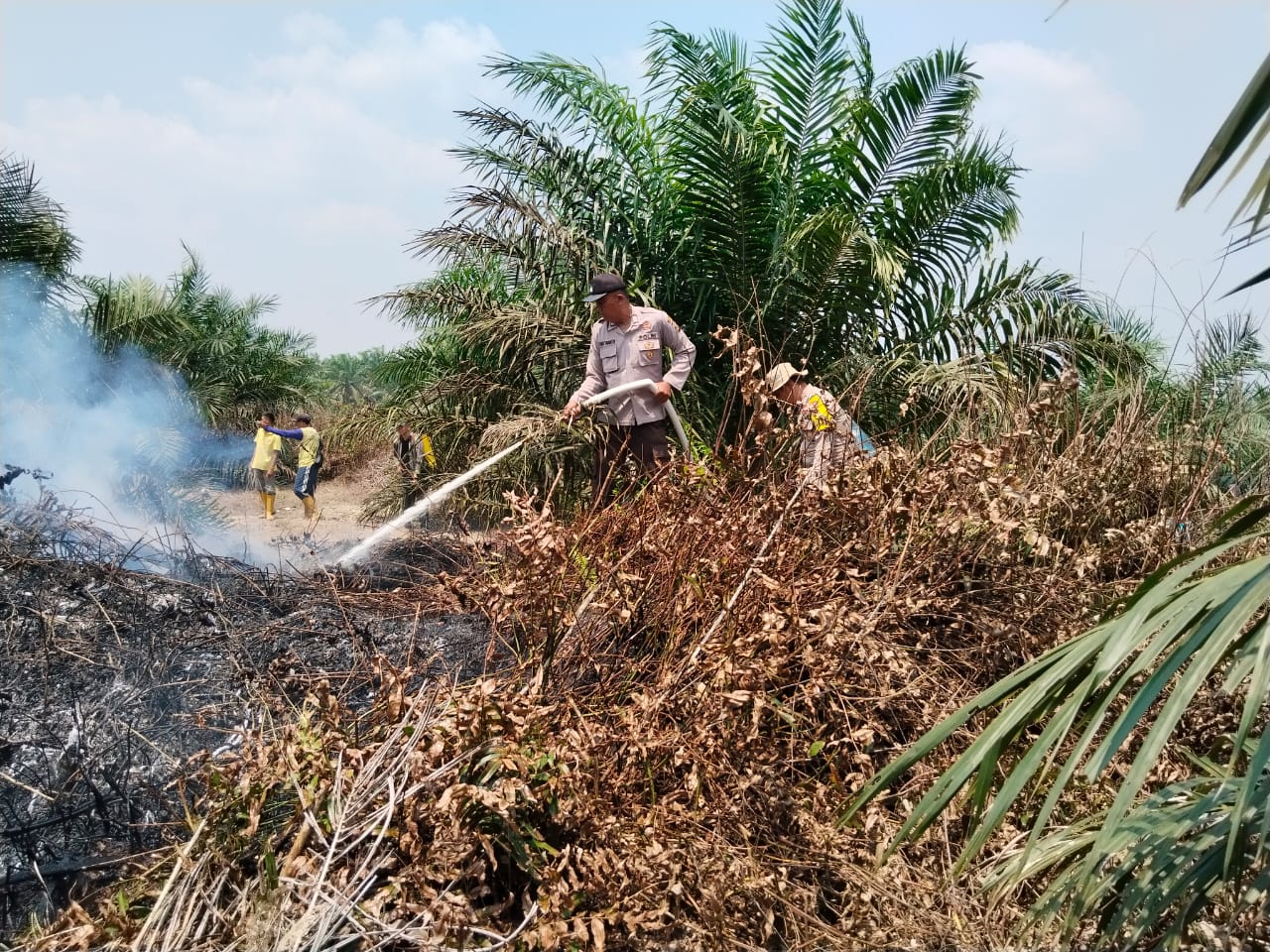 Polsek Kerumutan Lakukan Pendinginan Bekas Karhutlah