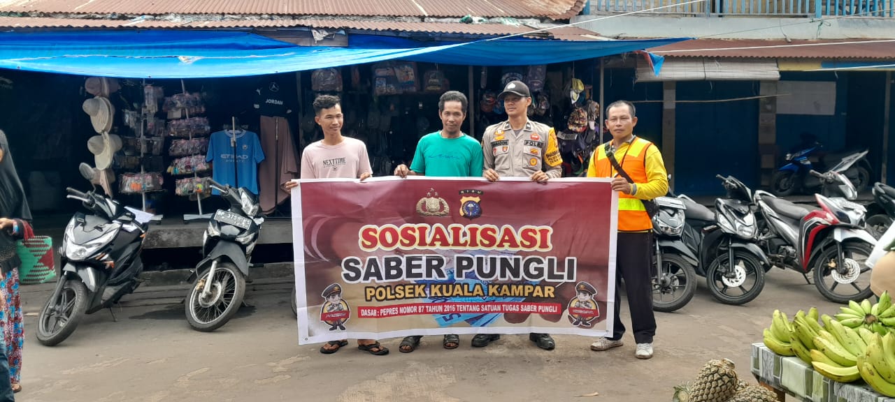 PELALAWAN, NEWSHANTER.COM – Polsek Kuala Kampar jajaran Polres Pelalawan Polda, melakukan sosialisasi Perpres 87 tahun 2016 tentang Satuan Tugas Sapu Bersih Pungutan Liar di Parkiran Pasar Minggu Kelurahan Teluk Dalam, Kecamatan Kuala Kampar, kabupaten Pelalawan, Minggu (26/11/2023).