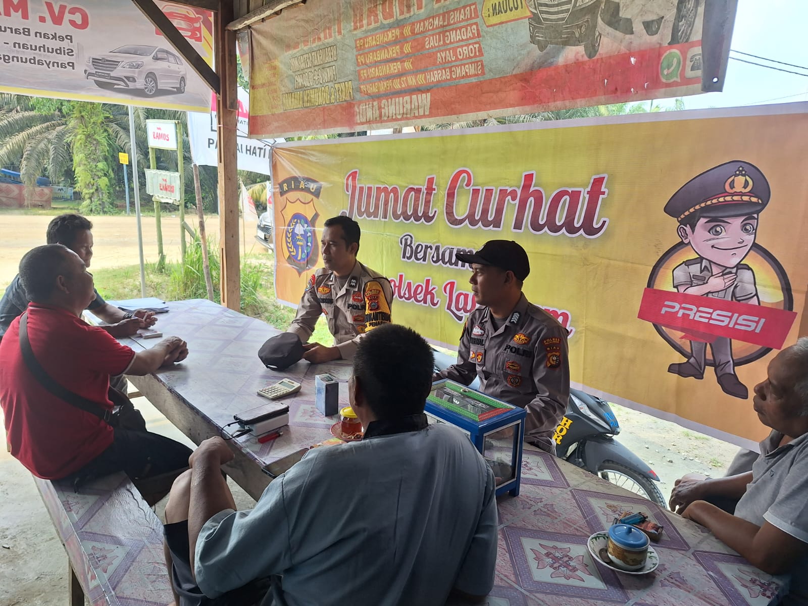 PELALAWAN, NEWSHANTER.COM – Jumat Curhat Polsek Langgam jajaran Polres Pelalawan Polda Riau, bertempat di warung Lubis Jalan Koridor RAPP KM 39 Desa Segati Kecamatan Langgam Kabupaten Pelalawan, Jumat (29/9/2023).