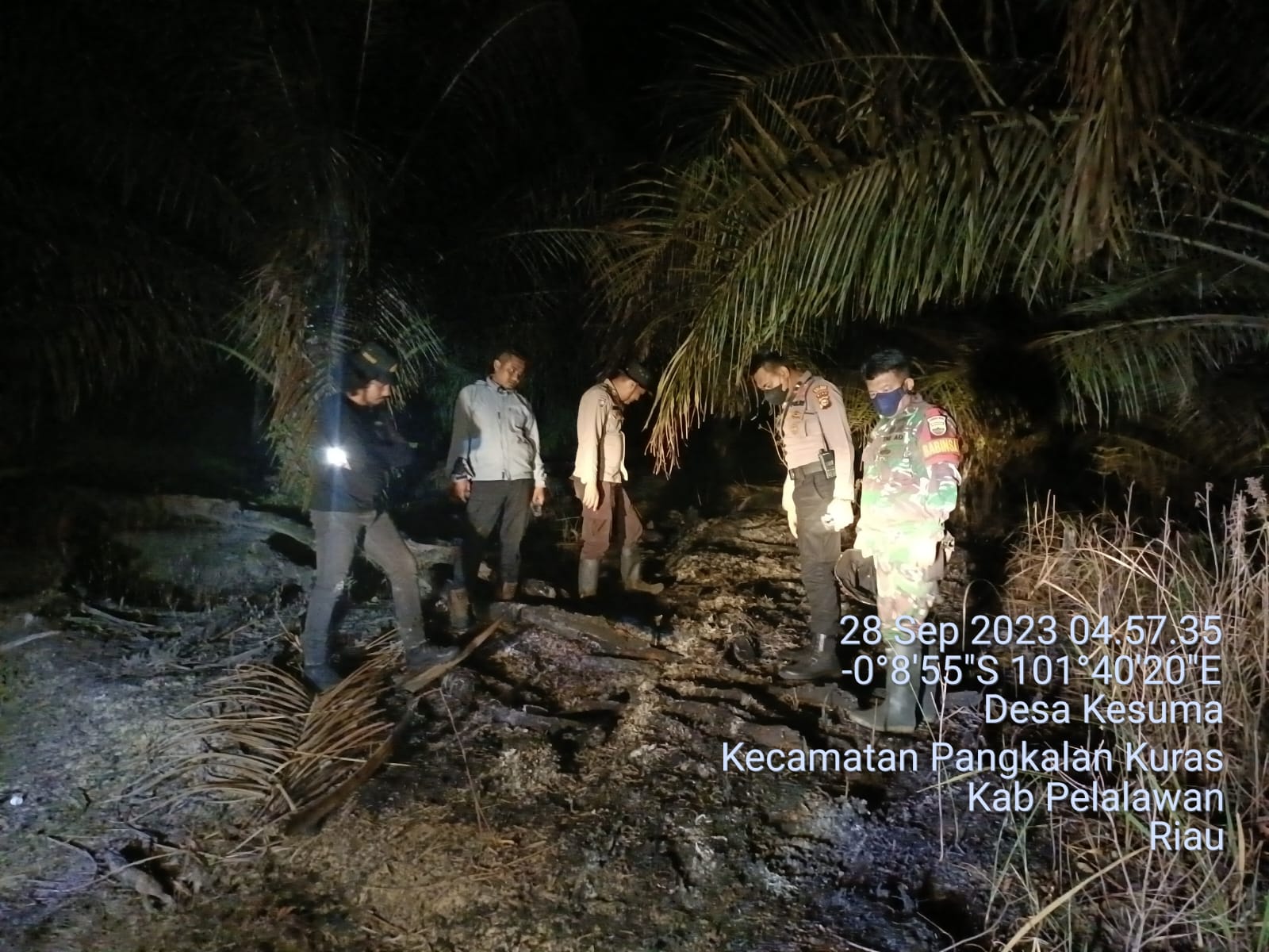 Kuat Personil, 5 orang Personil Polsek Pangkalan Kuras yang dipimpin oleh Ps.Kasihumas Polsek Pangkalan Kuras AIPDA Marmin SH, Bhabinkamtibmas Desa Kesuma BRIPKA ANDRIKO, Babinsa Desa Kesuma SERKA HENDRIK SIMAMORA, 1 (Satu) Orang dari Aparatur Desa Kesuma, 1 (Satu) Orang dari Personil Balai TNTN (Taman Nasional Tesso Nilo) dan 2 (Dua) Orang RPK PT. Arara Abadi Distrik Nilo (AADN)