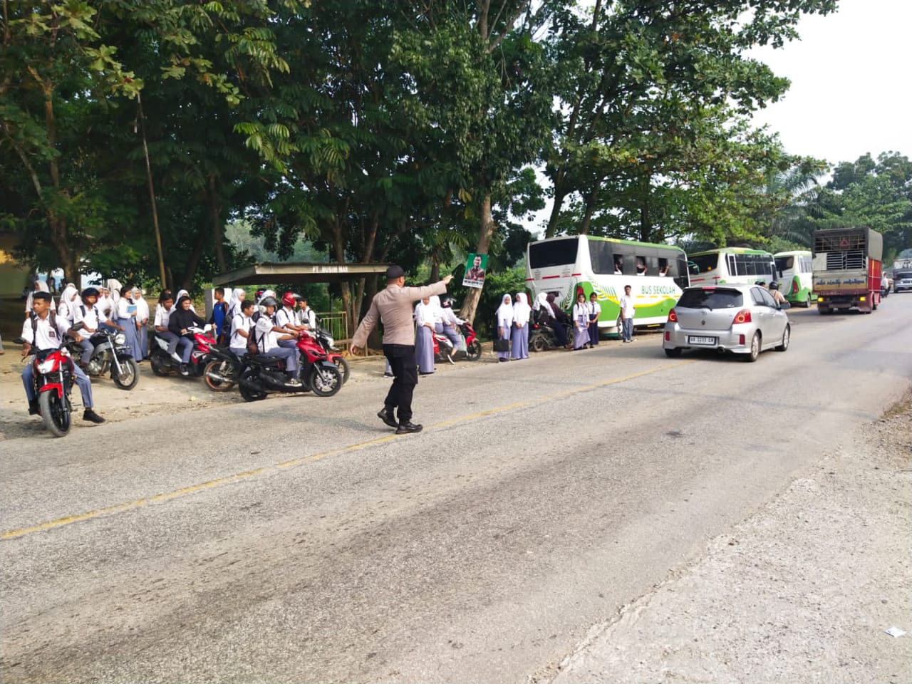 Seperti hari ini, giat di laksanakan di setiap persimpangan yang rawan kecelakaan di Jalan Lintas Timur Kecamatan Pangkalan Lesung.