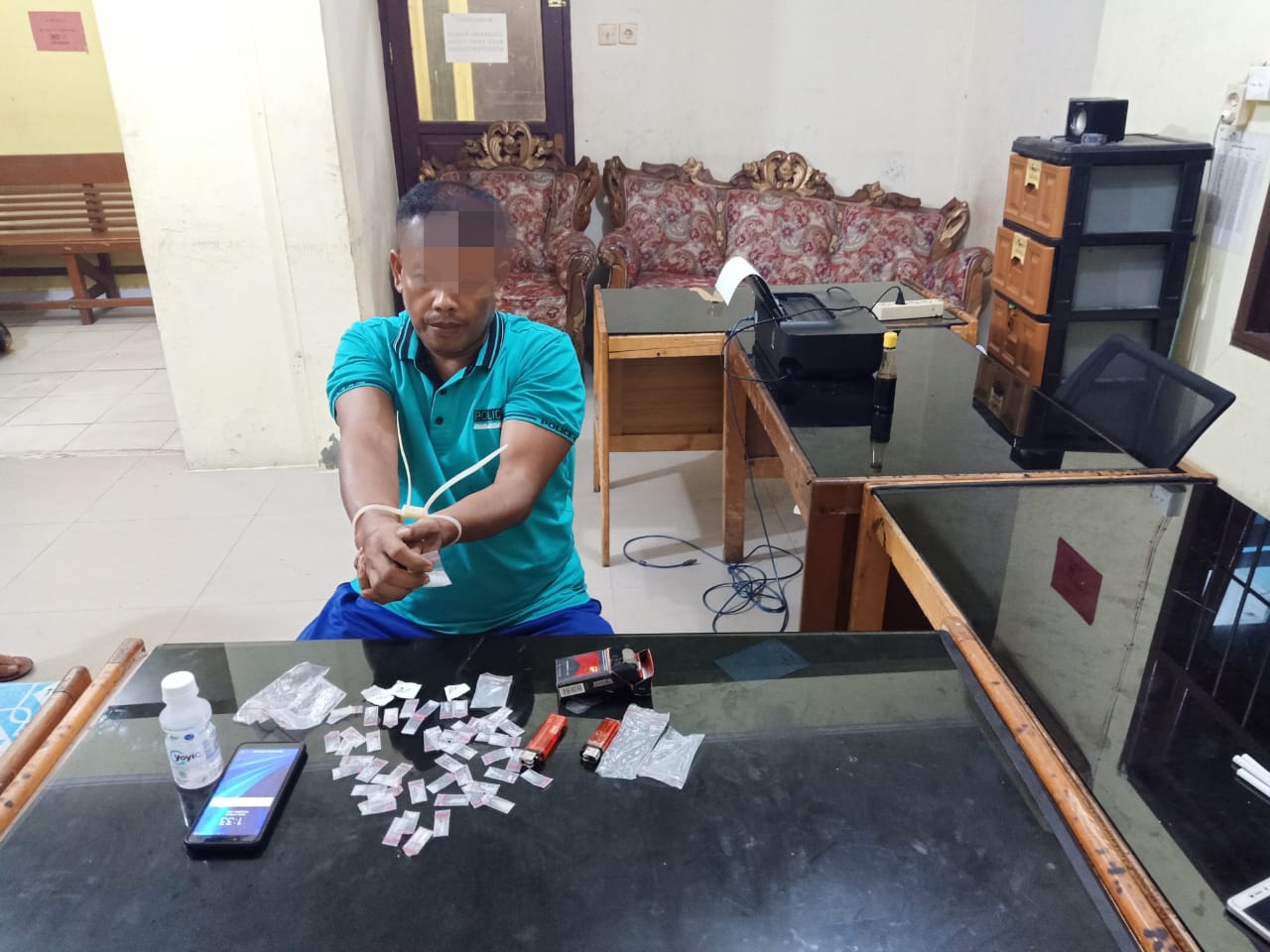 Dari pelaku berhasil diamankan barang bukti 1 paket sedang dan 50 paket kecil shabu terbungkus plastik bening, sebuah kantong plastik hitam, 1 unit Hp androit merk Xiaomi dan beberapa peralatan penggunaan shabu.