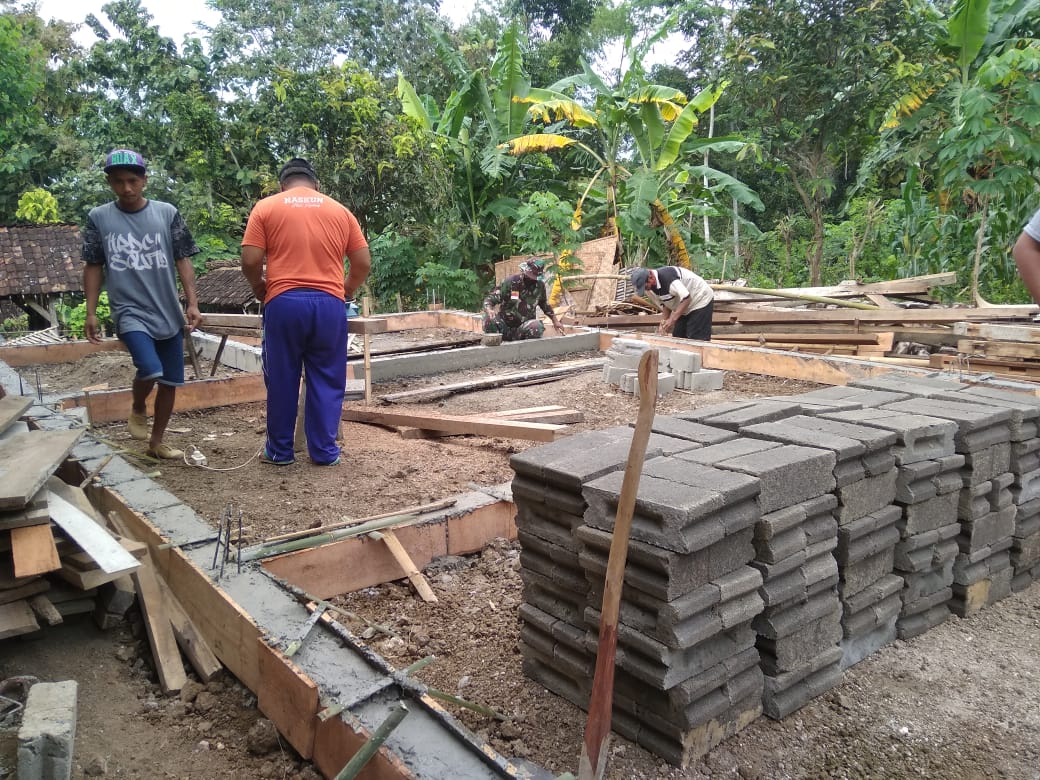Seperti yang dilakukan oleh Serka Sutrisno dan Sugeng di saat pengerjaan rumahnya ini, Kamis (25//6/20), papan cor yang pondasinya telah kering segera dilepas karena bekas yang digunakan untuk proses pengecoran dapat dipakai lagi dan dipakai untuk pengecoran yang lainnya.