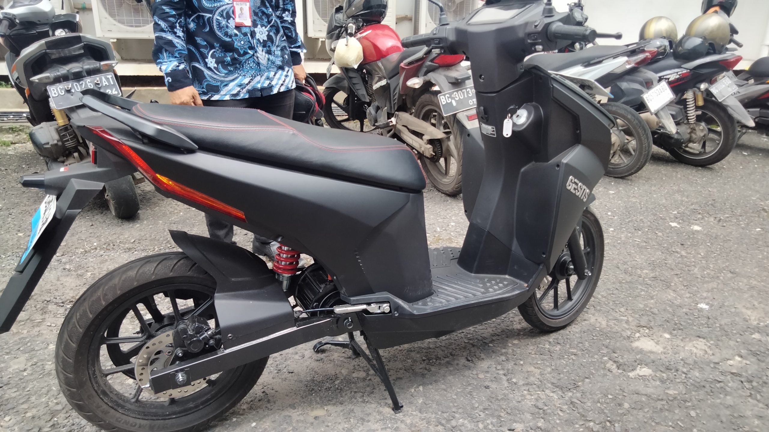 “Motor listrik ini menggunakan mesin 2 KwH atau 2.000 Watt dengan sistem penggerak pulih. GESITS adalah motor matic. Untuk baterai bisa ditempuh dengan jarak sekitar 50 km/jam maksimal 70 km/jam. Sedangkan untuk charge full dari 0 sampai ke 100 persen hanya memakan daya 1,4 kwh atau kurang lebih Rp. 2 ribu selama 3 atau 4 jam,” bebernya.