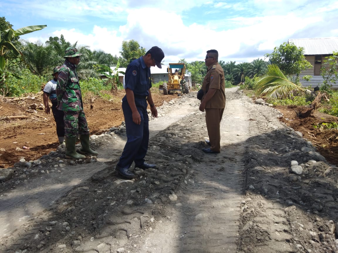 Banggai,- Kades Boduraja SH bersama Anggota BPD Desa Samalore Kecamatan Toili, meninjau langsung pekerjaan jalan yang ada di Desanya yang saat ini pembangunanya sedang dikerjakan oleh Satgas Tentara Manunggal Membangun Desa (TMMD) Senin (23/3).