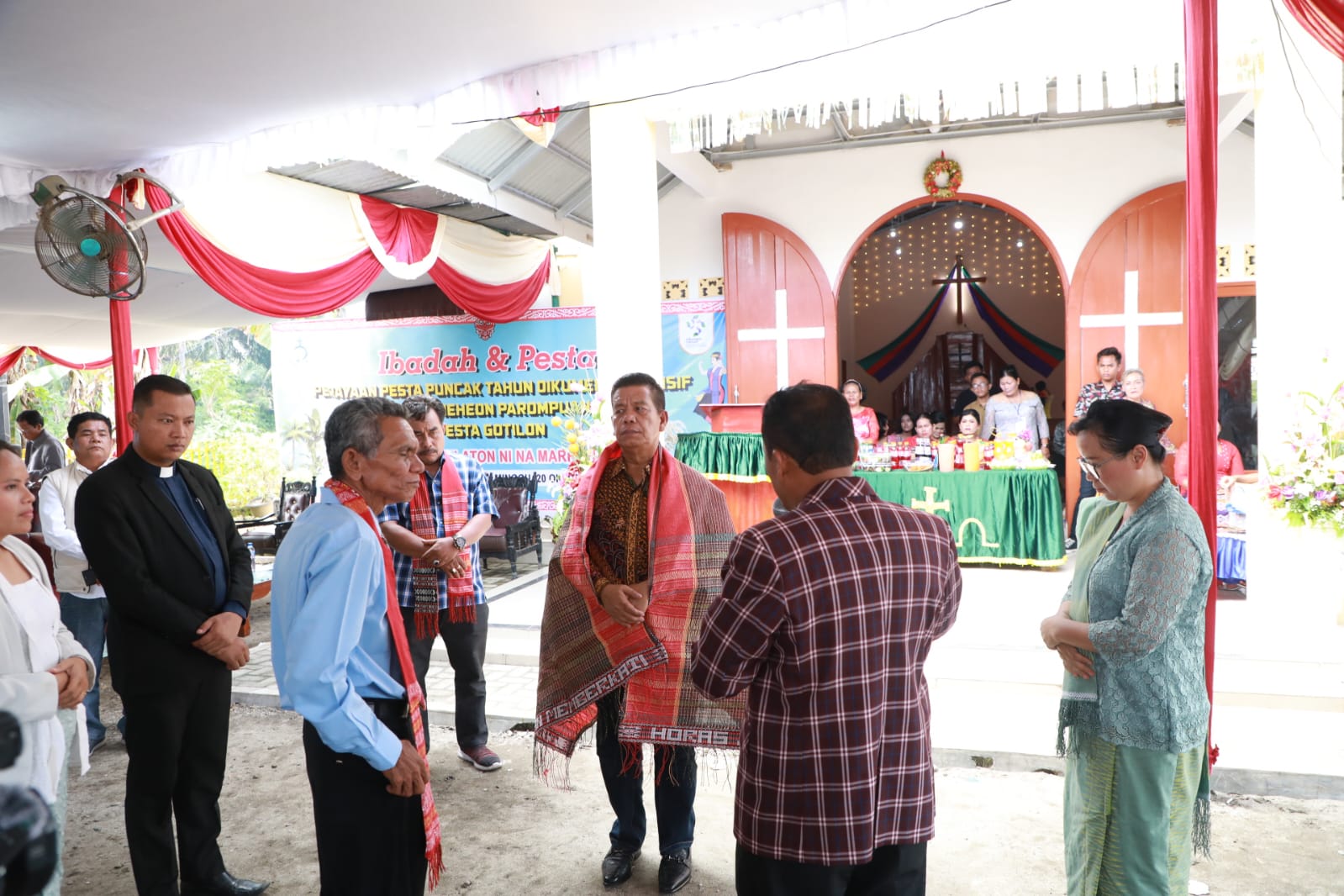 Simalungun, newshanter.com –Radiapoh Hasiholan Sinaga menghadiri ibadah dan pesta perayaan pesta puncak tahun Oikumene Inklusif pesta parheheon Poarumpuan / Ina dan Pesta Gotilon di HKBP Semangat Baris, Kecamatan Siantar, Kabupaten Simalungun, Minggu (20/10/2024).