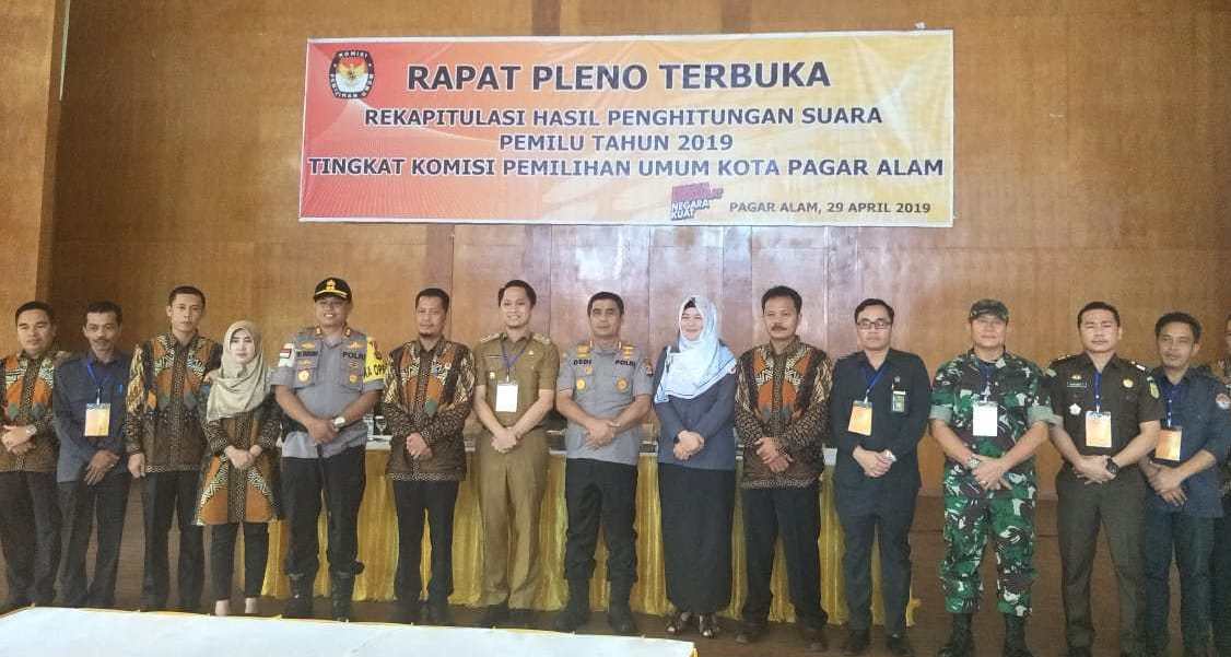 Pagaralam Newshanter.com. KPU Kota Pagar Alam Gelar Rapat pleno terbuka dalam rangka rekapitulasi hasil penghitungan suara pemilu 2019 Senin (29/04/2019). di aula SD Model Kota Pagaralam.