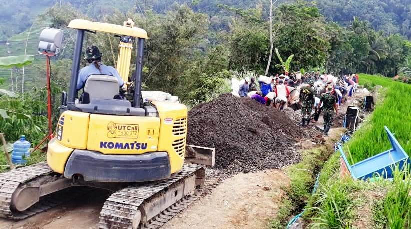 BANYUMAS – Saatnya alat berat tampil kembali di pembangunan jalan yang merupakan sasaran fisik TMMD Reguler ke-108 Kodim 0701/ Banyumas, di Desa Petahunan, Kecamatan Pekuncen, Kabupaten Banyumas.
