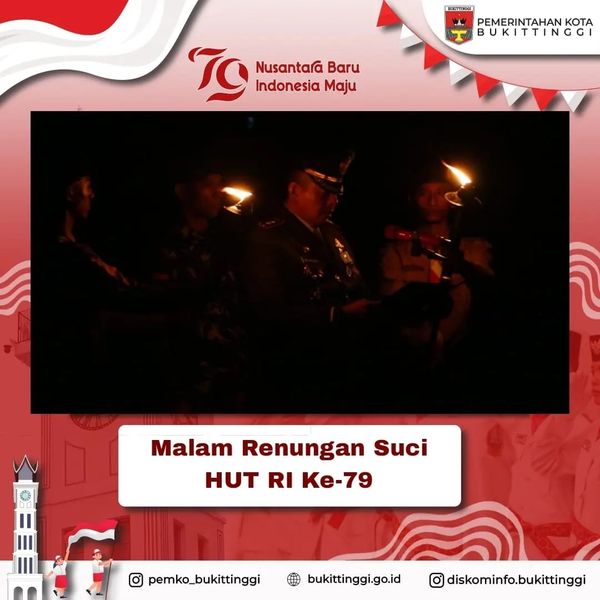 Upacara yang renungan suci menyambut Hari Kemerdekaan Republik Indonesia ke 79 tahun. diikuti Wali Kota, Wakil Wali Kota, Unsur Forkopimda, Sekda, Asisten dan seluruh Kepala SKPD di lingkungan Pemerintah Kota Bukittinggi.(A/M)
