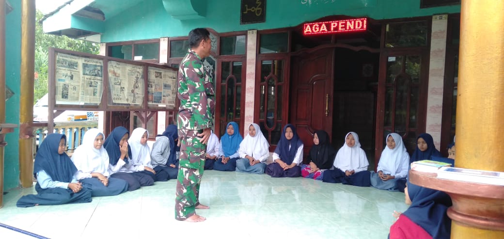 Newshanter, Situbondo –Salah satu kegiatan non fisik TMMD ke 107 Kodim 0822/situbondo adalah melaksanakan penyuluhan dan Pembinaan Mental (Bintal) bagi santri/wati di ponpes sabda ria nada desa tlogosari.