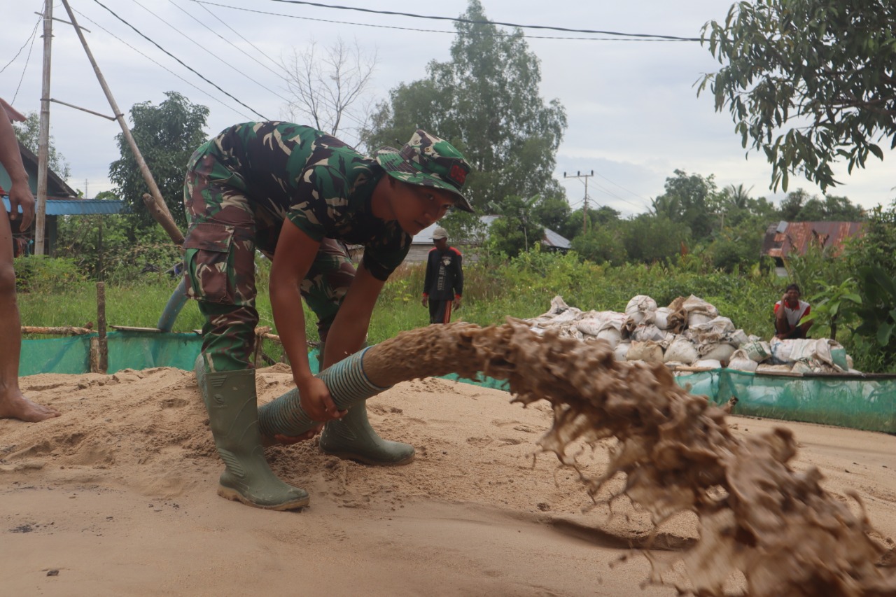 Kapuas,- Karena hujan yang turun di lokasi TMMD dengan intensitas tinggi dalam waktu yang cukup lama lubang jambanisasi atau septi tank yang sedang di kerjakan satgas TMMD di genagi air. Satuan Tugas (Satgas) TNI Manunggal Membangun Desa (TMMD) ke-110, Kodim 1011/KLK, di Desa Saka Lagun, Kecamatan Pulau Petak, Kabupaten Kapuas harus berjibaku mengeluarkan air dengan menggunakan mesin penyedot air Kamis (11/3/2021).