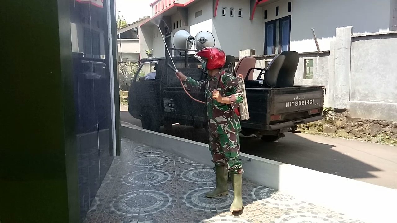 Pasiter Kodim Kapten Arh Suprapto mengatakan pihaknya melakukan penyemprotan disinfektan di sejumlah fasilitas umum yang ada di desa sasaran TMMD guna memutus penyebaran virus corona ini.