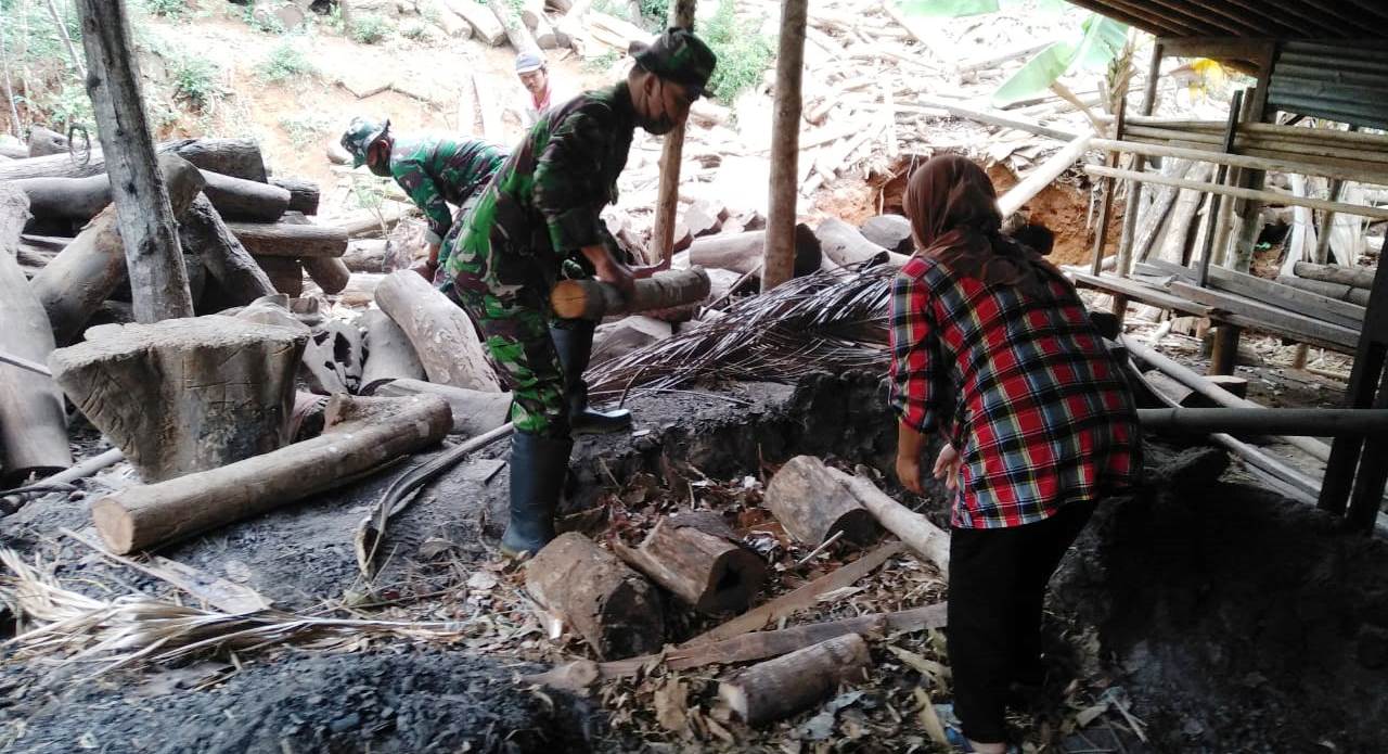 Hal itu dilakukan menyusul di desa sasaran ada warga yang memproduksi arang secara tradisional di pekarangan rumahnya. Serka Supriyono yang sedang melaksanakan komunikasi sosial (Komsos), di rumah Ibu Karni warga Dusun Pucangsari Rt 27/12, itu pun tertarik untuk belajar membuat arang.
