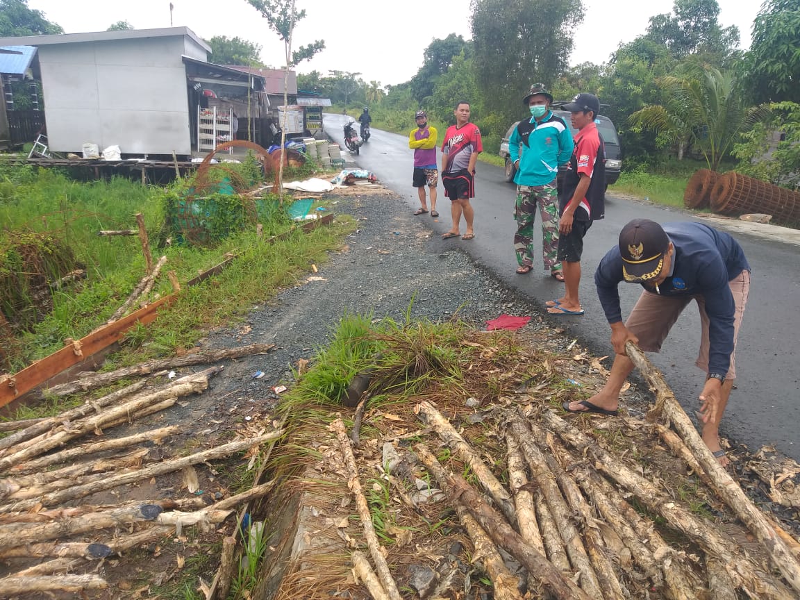 Kapuas,- Personil Satgas TMMD 110 Kodim 1011/KLK bersama warga menyiapkan kayu galam untuk pendukung konstruksi pembangunan jembatan di Desa Saka Lagun, Kecamatan Pulau Petak, Kabupaten Kapuas Sabtu, (20/03/2021). Pengumpulan kayu dilakukan untuk proses pembangunan jembatan tani yang kedua.