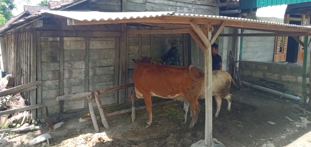 “Iya, saya sedang membantu memberikan makanan kepada hewan ternak warga,” katanya