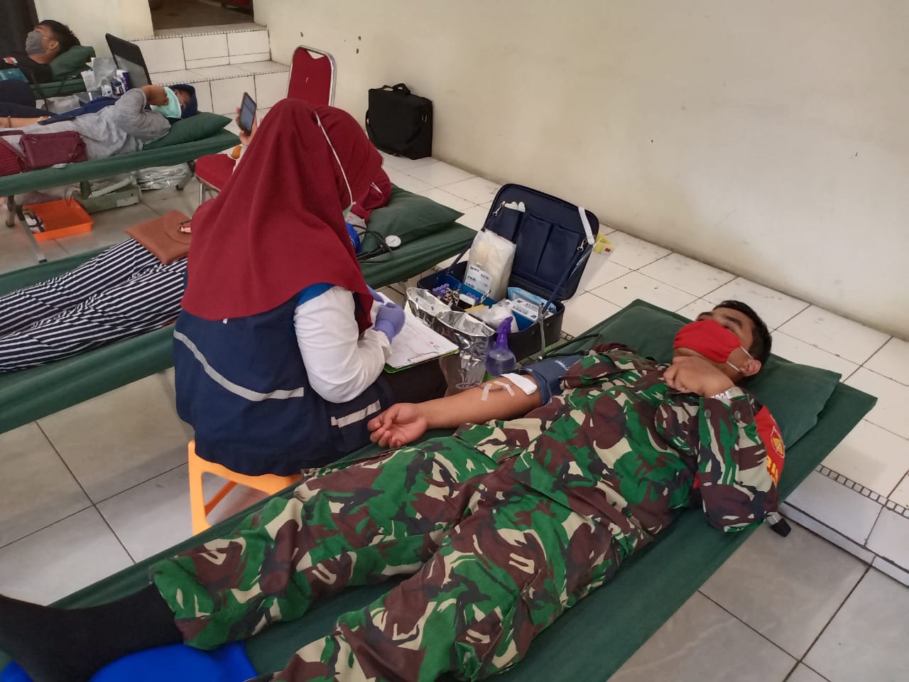 Kudus – Satgas TMMD Reguler Ke-107 Kodim 0722/Kudus bekerja sama dengan Palang Merah Indonesia(PMI) Cabang Kudus mengadakan donor darah guna mengantisipasi kekurangan persediaan darah ditengah penyebaran Covid-19,Rabu 15/04/20.