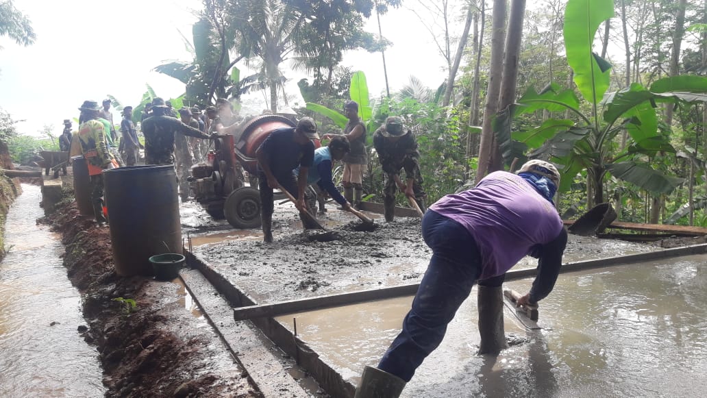 Kudus – Sudah memasuki hari ke-9 TMMD di Desa Kedungsari, Kecamatan Gebog, Kabupaten Kudus dilaksanakan. Pengerjaan sasaran kegiatan fisik pengecoran jalan dan rehab Rumah Tidak Layak Huni (RTLH) terus di kejar target pengerjaannya.