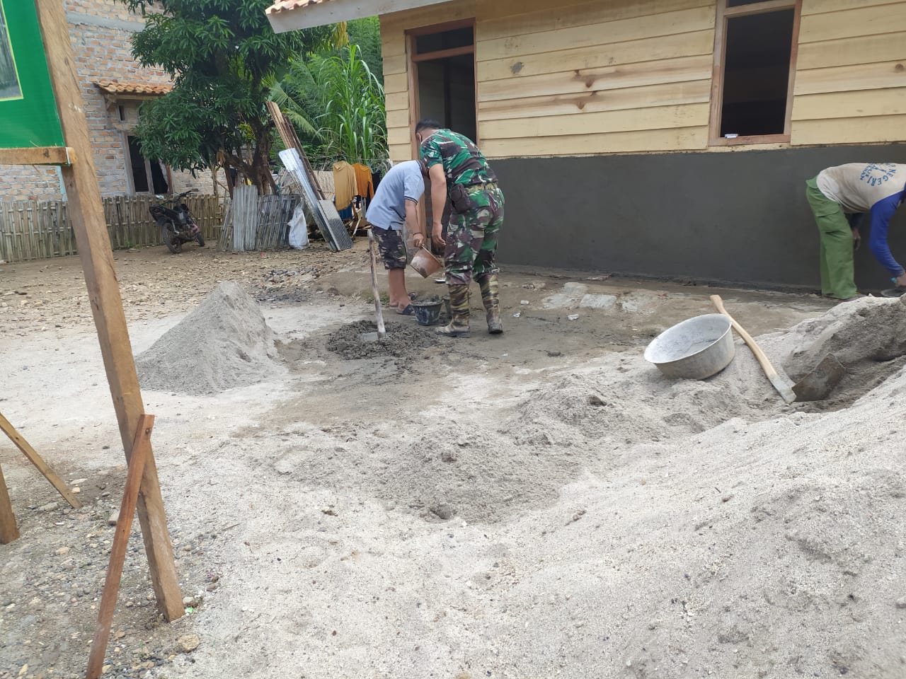 “Adukan material plester terbuat dari campuran pasir dan semen harus tepat, kami lakukan secara gotong royong untuk mempercepat pemlesteran,” tegasnya.
