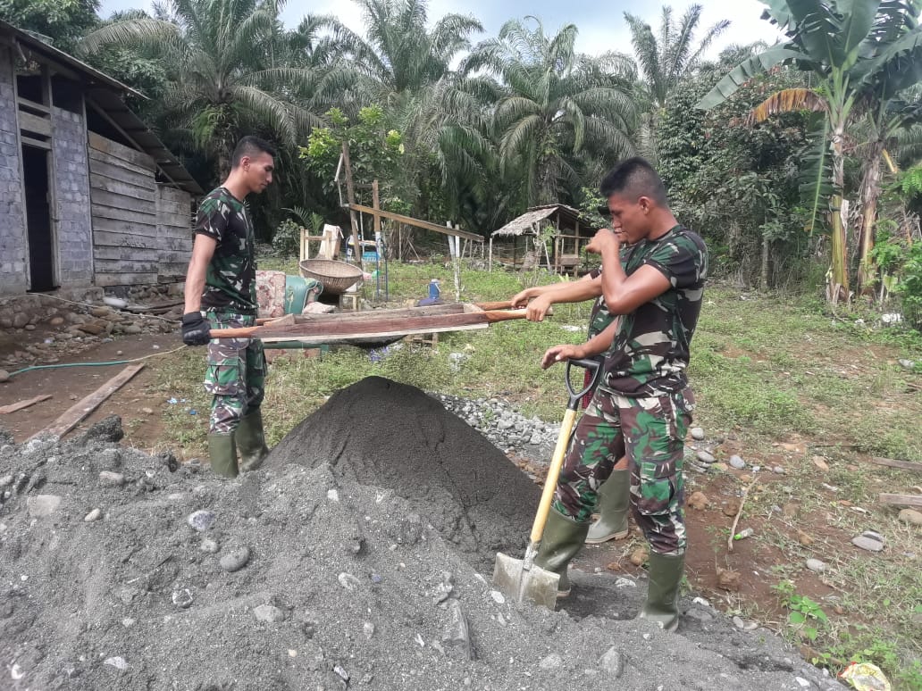 Banggai,-Anggota Satgas Tentara Manunggal Membangun Desa (TMMD) terus melakukan pengerjaanya dalam melaksanakan dan mensukseskan TMMD di Desa Samalore, Kecamatan Toili. Para anggota nampak melakukan pekerjaan seperti pengayaan pasir yang akan digunakan sebagai bahan pengecoran plat deker dan pengecoran rumah warga.