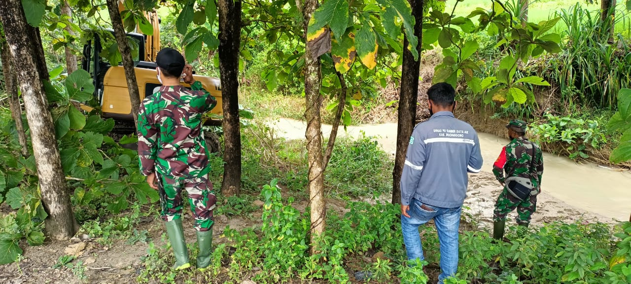 Normalisasi sungai di lokasi sasaran TMMD pada tahun 2021 ini merupakan salah satu sasaran program fisik di Desa Jatimulyo dan Desa Ngrancang, Kecamatan Tambakrejo. (Pendim 0813)