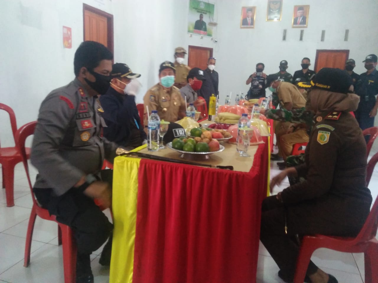 BANGGAI,-Sebelum melakukan peninjauan jalan Desa yang dikerjakan oleh satgas TMMD,ke-107, Tahun 2020, Kodim 1308/LB, Bupati Banggai, Ir Herwin Yatim, MM, didampingi Dansatgas Letkol Inf Fanny Pantouw, wakil Bupati Mustar Labolo, Kapolres AKBP Budi Priyanto, Kajari Masnur SH, dan Ketua DPRD Soeprapto, menikmati sajian kue dan bua-buahan oleh masyarakat di Kantor Desa Samalore, Kecamatan Toili, kabupaten Banggai, Sulawesi Tengah (Sulteng), Selasa (14/4/2020).