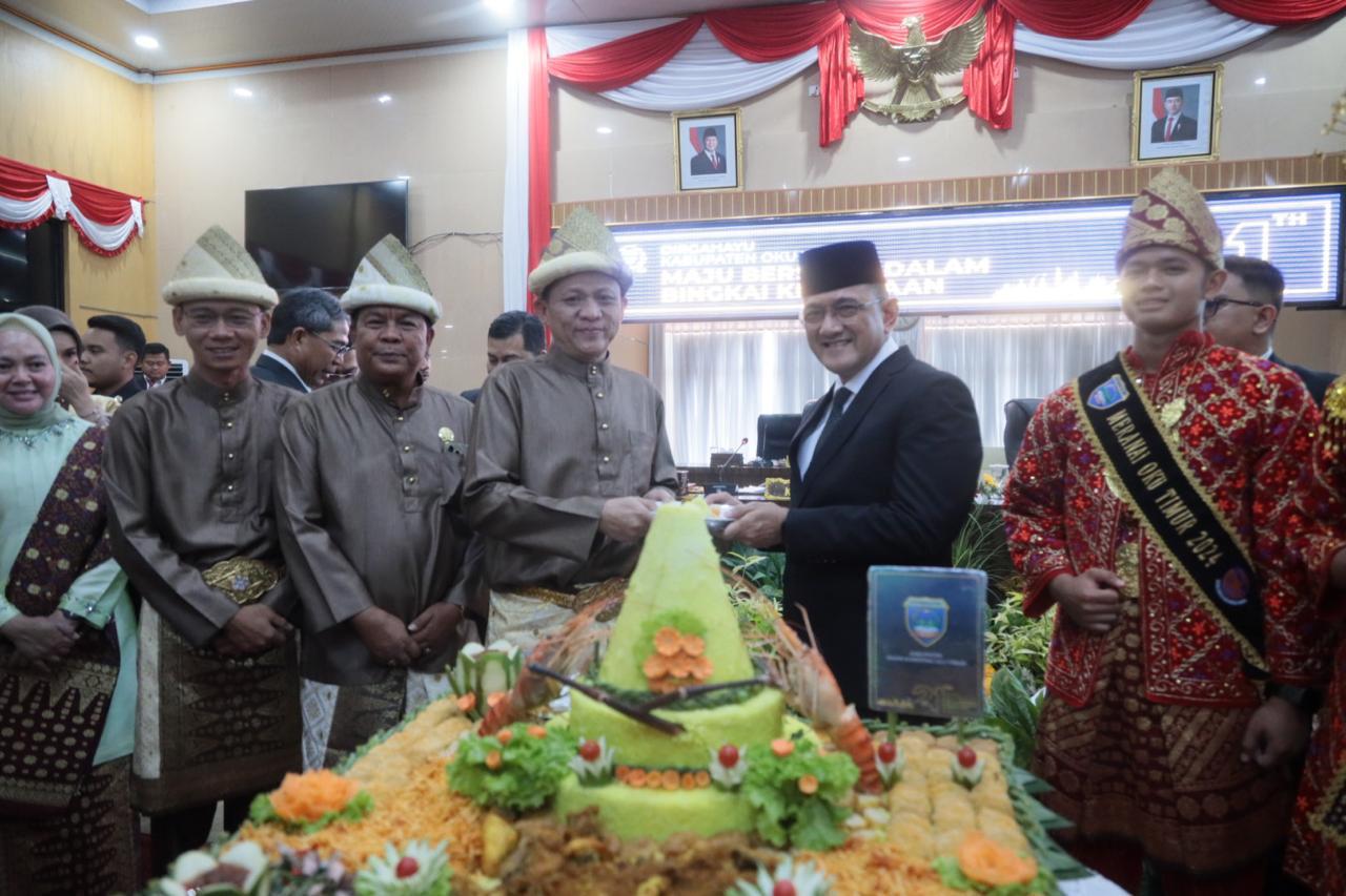 Menutup paripurna HUT OKU Timur ke 21 kali dilakukan Pemotongan nasi tumpeng dan foto bersama.