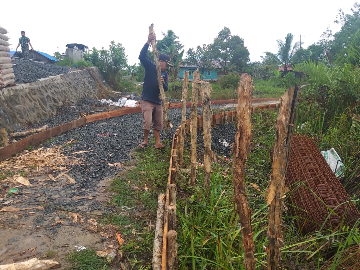 Kapuas,- Sekretaris Desa (Sekdes), Kecamatan Pulau Petak, Kabupaten Kapuas, sangat mahir memasang kayu galam untuk membantu Satgas TMMD ke 110, Kodim 1011/KLK dalam membangun jembatan, Minggu (21/03/21).