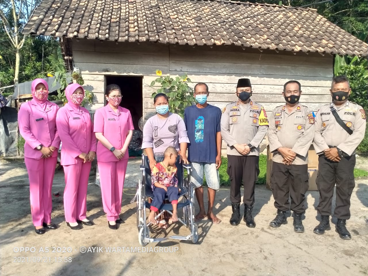 Selain memberikan bantuan kursi roda, Kapolres Indra Arya Yudha dan Ketua Bayangkari Ny. Aryanti Indra juga memberikan semangat dan dukungan kepada keluarga Alwi dan Seli.
