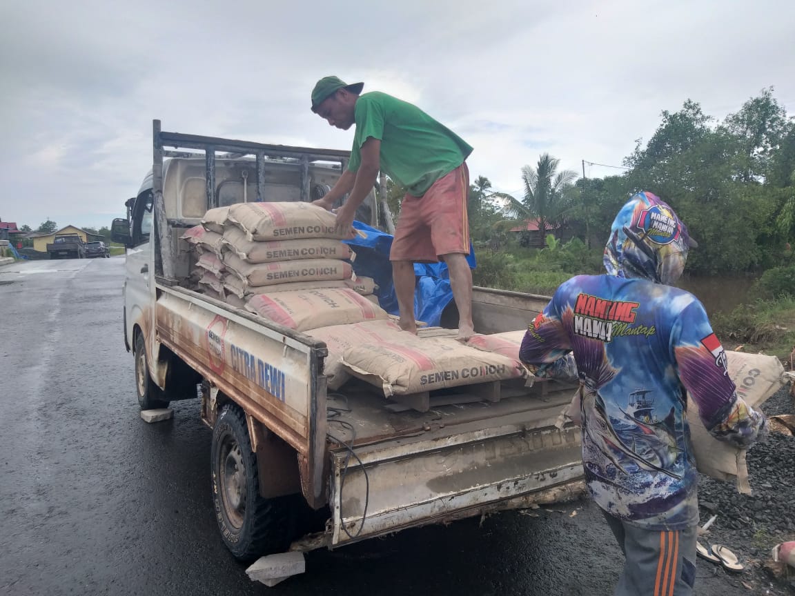 Kapuas,- Untuk mensukseskan pembangunan oleh Satgas TMMD ke 110, Kodim 1011/KLK, di Desa Saka Lagun, Kecamatan Pulau Petak, Kabupaten Kapuas, Material semen kembali didatangkan ke lokasi TMMD Sabtu (20/03/2021).