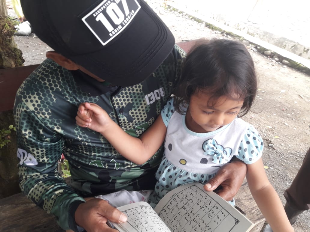 Hal itu dibuktikan, dengan layaknya seorang ayah, Serda Nekat memeluk dan memangku anak Zahra yang masih  berusia 5 tahun, dan dengan sabarnya ia mengajarkan cara membaca kitab suci Alquran yang baik dan benar, tanpa ada raut lelah diwajahnya.