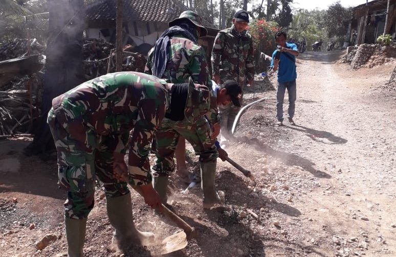Newshanter.com- Cuaca panas di musim kemarau mengakibatkan kekeringan di mana-mana termasuk di Wilayah Kec. Donomulyo Kab. Malang, dalam pelaksanaan di akhir pekerjaan Pipanisasi sejumlah Anggota Satgas TMMD 106 juga melindungi diri saat bekerja di lapangan. Senin (04/11/19).