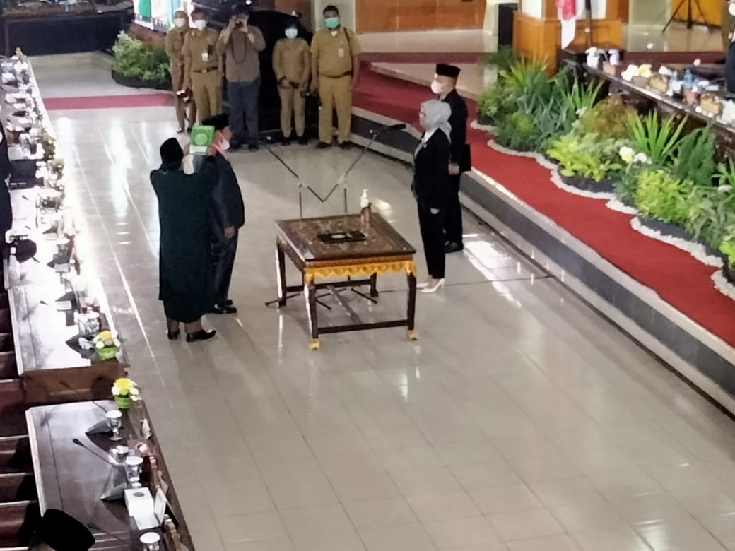 Hj. Anita Noeringhati mengatakan pelantikan hari ini adalah pelantikan antar waktu dari Alm. H. Burlian dari Partai Gerindra.