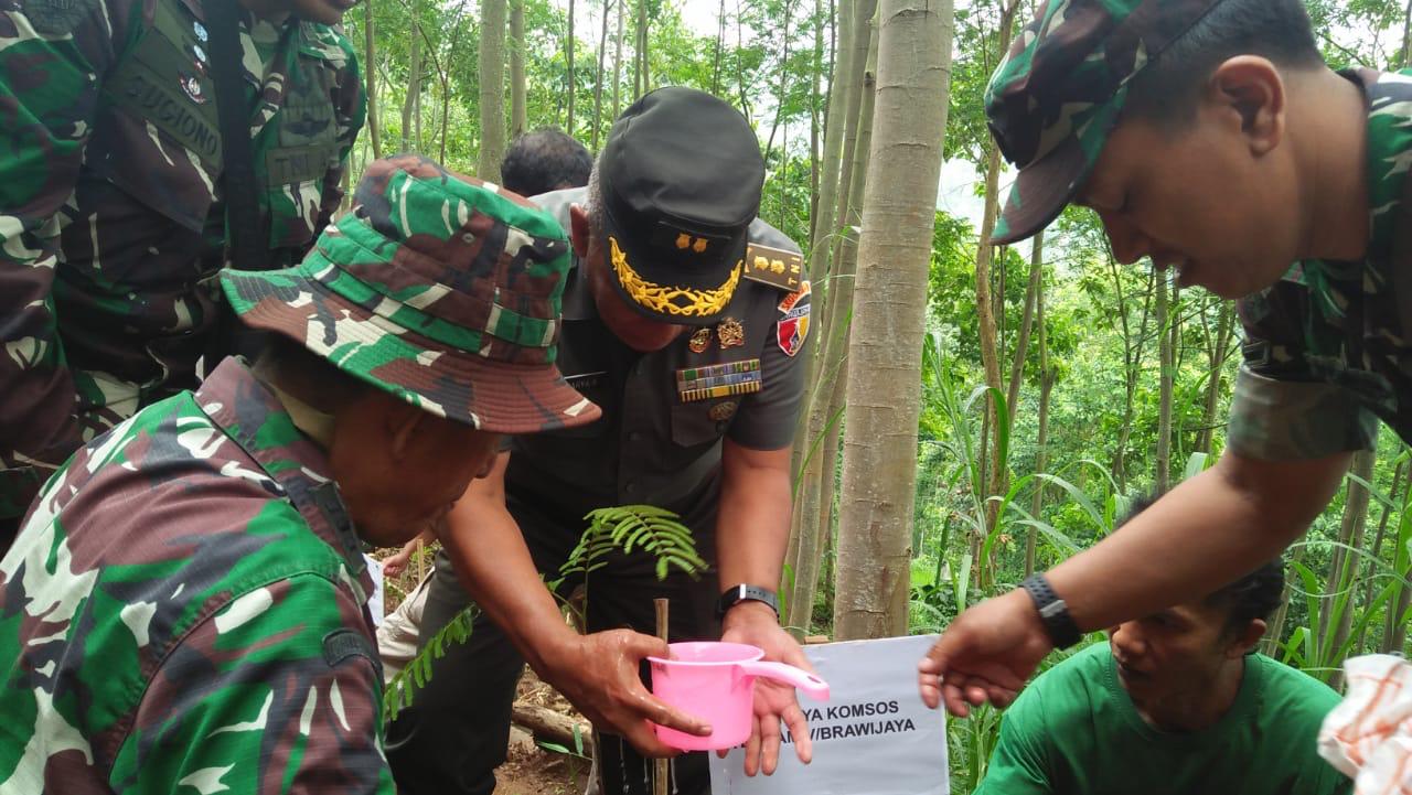 Situbondo-Staf Ahli Pangdam V/Brw Kol Inf Suwarto disela-sela peninjauan pelaksanaan TMMD Ke 107 yang hari ini dimulai secara serentak diseluruh Indonesia, melaksanakan Penanaman Pohon di kanan kiri jalan baru yang dikerjakan oleh Satgas TMMD Ke 107 Kodim 0823/Situbondo. (16/03)