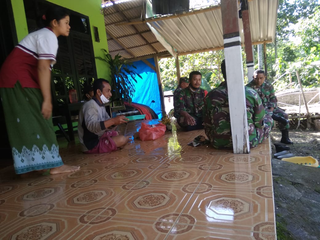 Dengan keikhlasan pemilik rumah, para anggota TNI yang sedang melaksanakan istirahat melepaskan lelahnya, tiba-tiba mengeluarkan satu tundun pisang dan juga beberapa gelas yang diisi minuman kopi untuk diberikan kepada para anggota TNI.