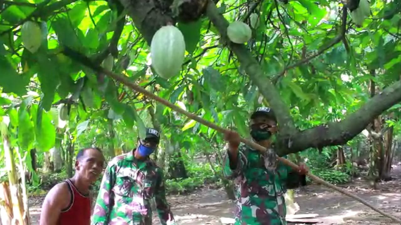 “Saya sangat senang karena bapak-bapak TNI mau membantu saya dalamm panen Kakao ini. Dengan ini saya bisa menekan biaya tukang petik,” kata Suyat, Minggu 12/4/20) dengan perasaan senang.