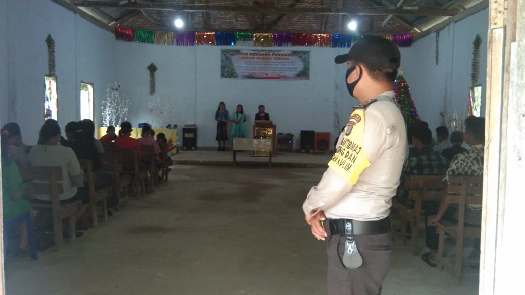 PELALAWAN, NEWSHANTER.COM Dalam rangka Operasi Lilin Lancang Kuning Tahun 2020, Polsek Pangkalan Kuras mengerahkan personel untuk melakukan sterilisasi dan pengamanan ibadah Tahun Baru di 25 gereja, Jumat (1/1/2021).