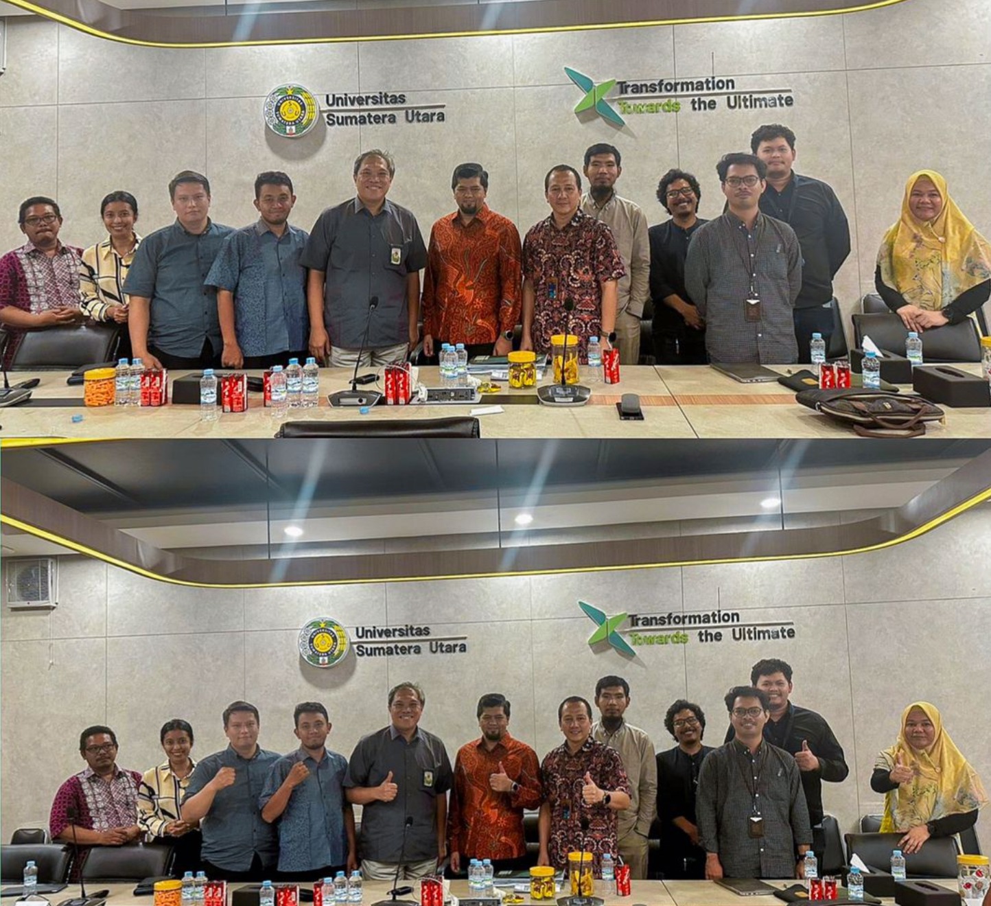 GM Witel Sumut mendampingi Deputy EVP Customer Experience & Digitization Telkom Indonesia, bersama Strategic Account Manager Enterprise Solution (SAM ES) menyampaikan progres penyelesaian proyek Satu USU kepada Direktur Digitalisasi USU dan tim Pengembangan Sistem Informasi (PSI) USU.