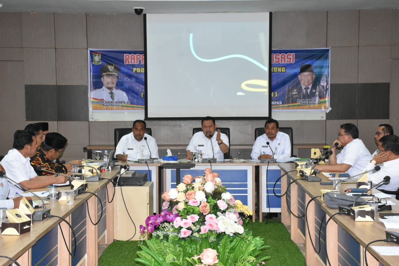 Hal tersebut disampaikan Bupati Kampar Catur Sugeng Susanto,SH saat memimpin rapat Koordinasi dan Sosialisasi Rencana Pelaksanaan Program Unggulan Pengendalian Inflasi Daerah Melalui Inovasi “OCU MAPAN” (optimalisasi cara untuk mendiri pangan) di ruang rapat lantai III Kantor Bupati, rabu (11/3/20).