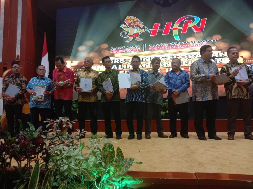 BANJARMASIN —Newshanter.com. Ketua PWi sumsel Firdaus Komar bersama 16 wartawan se-Indonesia menerima Press Card Number One (PCNO) yang diserahkan langsung oleh Ketua PWI pusat Atal S Depari, pada acara puncak HPN 2020 di gedung Mahligai Pancasila Banjarmasin, Kalimantan Selatan, Minggu (9/2/2020).