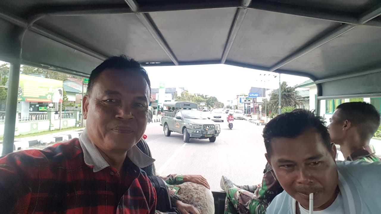 Dengan menggunakan alat transportasi berupa “mobil perang” sebutan yang dipake oleh Pasi Teritorial Kodim 1014/Pbn Kapt Inf Mulyono terhadap tiga unit mobil Pick Up yang dimodifikasi tambahan atap anti panas waktu melaju tapi tidak anti hujan apalagi angin karena bagian samping kiri dan kanan tidak tertutup dinding.