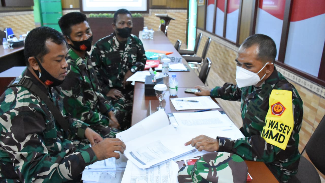 Kedatangan Tim Wasev bertujuan untuk mengecek administrasi dari setiap kegiatan TMMD Kodim 1004/Kotabaru. Beberapa lembar kertas yang sudah disiapkan anggota satgas TMMD Kodim 1004/Kotabaru satu persatu mulai di cek.