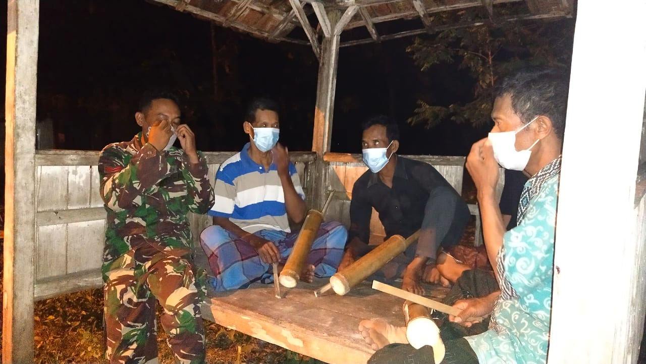 Bojonegoro – Guna menjalin kemanunggalan TNI dengan rakyat personel Satgas TMMD ke-110 Kodim 0813/Bojonegoro Koptu Kasturi melaksanakan komsos dengan masyarakat yang berkumpul di Poskamling untuk melakukan komsos dan pembinaan tentang pentingnya peran siskamling di masyarakat,Senin(22/03/2021).