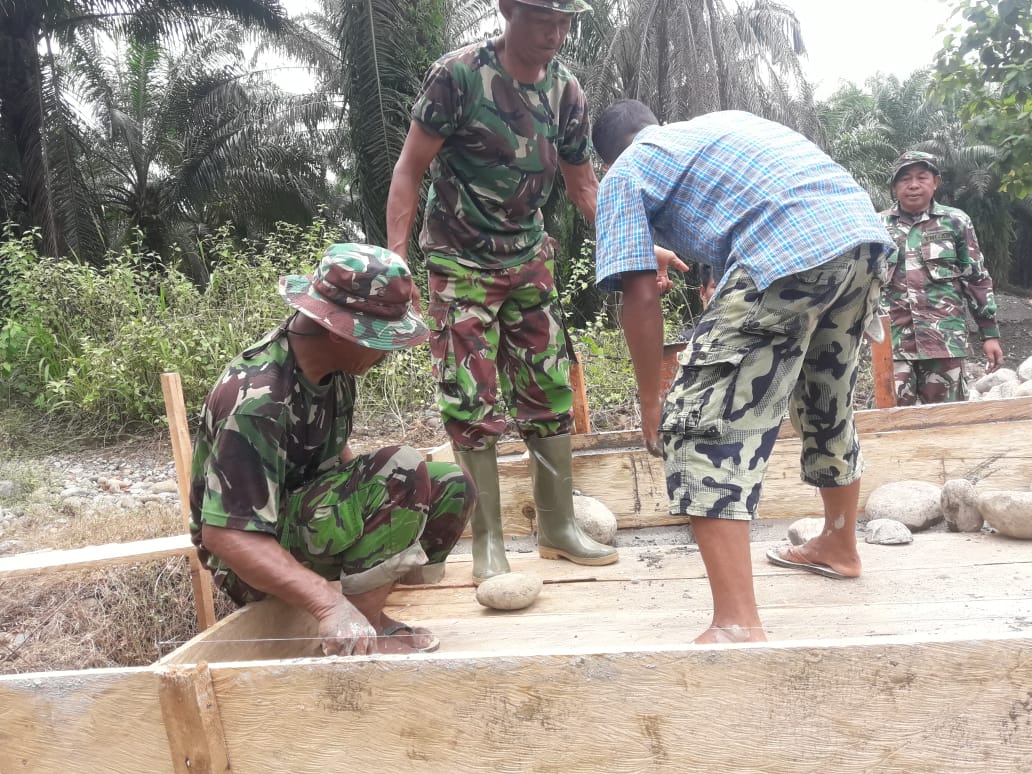 Pada Kamis (19/3) anggota gugus kerja Satgas TMMD melakukan pekerjaan pengecoran plat deker. Anggota TNI bersama masyarakat bahu membahu melakukan pekerjaan pengecoran.