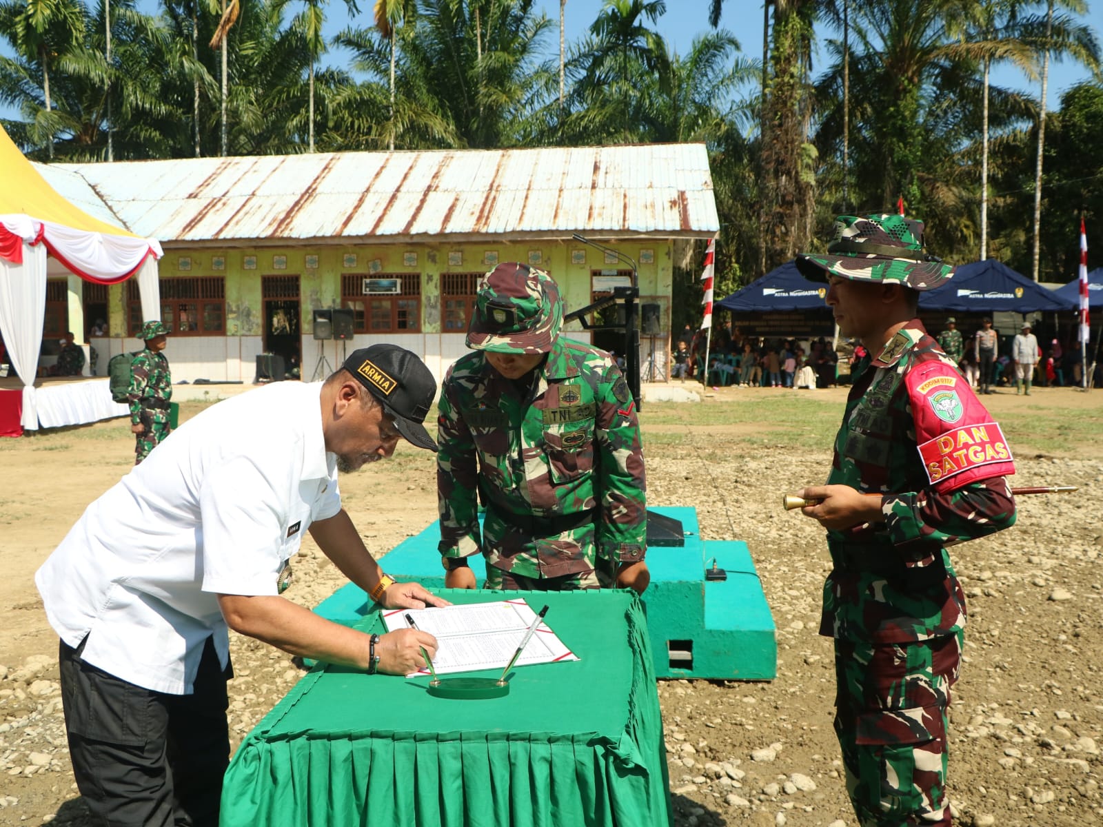 Pembukaan TMMD ditandai dengan pernyataan resmi oleh Bupati Aceh Tamiang, Drs. Armia Fahmi, MH, serta penandatanganan naskah serah terima pekerjaan kepada Dandim 0117/Aceh Tamiang, Letkol Arm Raden Subhi Fitra Jaya, S.Sos., M.M., yang juga bertindak sebagai Dansatgas TMMD.