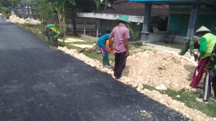 Kali ini anggota TNI dan masyarakay menimbun list jalan yang berada di Rt.05 Rw.03 Dusun Nglambangan, Desa Jatimulyo.