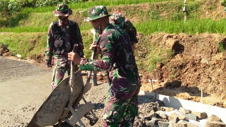 Namun demikian, tidak sedikit pula diantara prajurit itu yang sudah mempunyai jam tebang di bidang bangunan. Salah satunya di bidang cor jalan, sehingga keberadaannya akan sangat efektif untuk menuntaskan pekerjaan fisik yang ada.