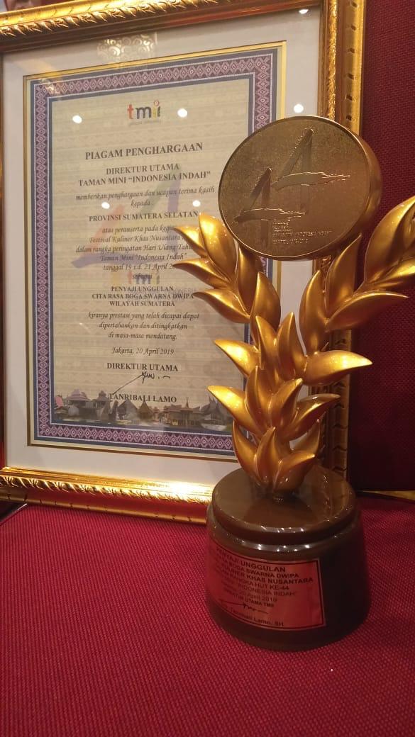 “Saya sangat bersyukur atas prestasi yang telah diraih oleh tim PKK Sumsel di bawah kepemimpinan ibu Febrita Lustia Herman Deru dan ibu Fauziah Mawardi Yahya. Beliau berdua sangat serius mempersiapkan tim PKK untuk mengikuti festival kuliner nusantara dalam gelaran peringatan ulang tahun TMII yang ke-44,” jelasnya.